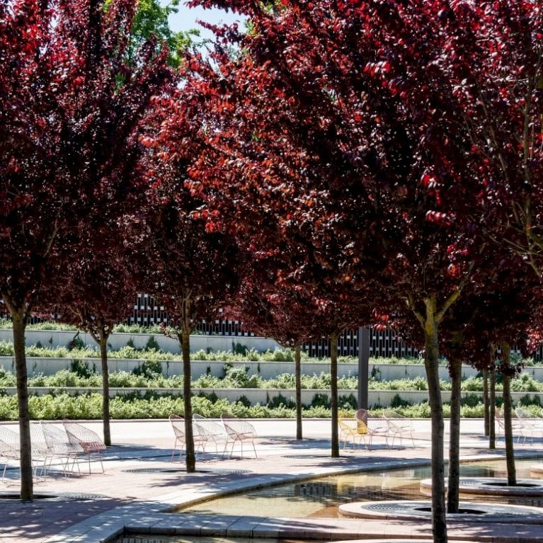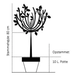 Sætter røde spiselige frugter (mirabeller) der modner i juli/august.