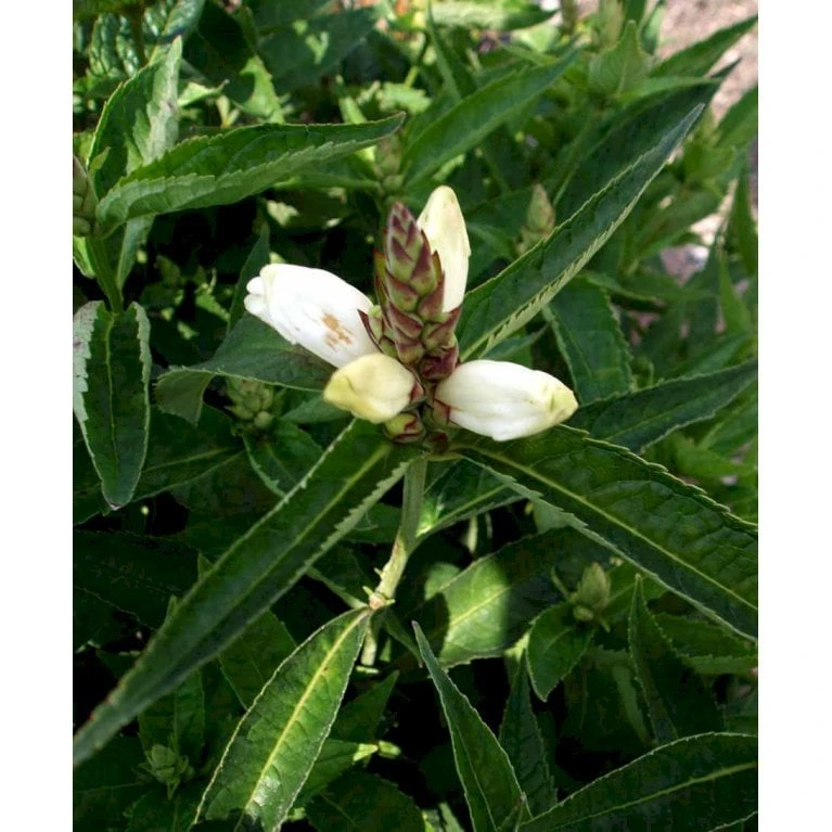 August – september. Store buttede hvide blomster, som sidder tæt op ad stilkene.