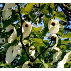 Blomstrer i maj – juni måned. Store snehvide blomster som kan ses ud som hvide duer eller lommetørklæder.