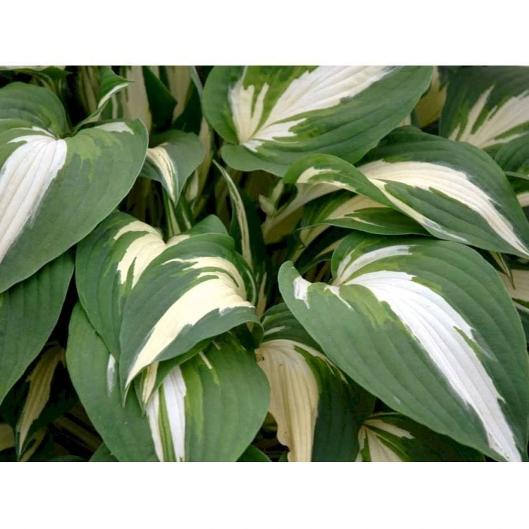 Mørkegrønne blade med uregelmæssig hvid tegning i midten. Velegnet til afskæring. Blomster og nye skud er spiselige.