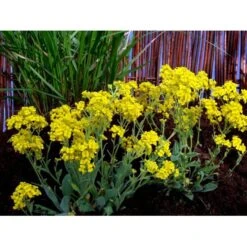 April – maj. Kuglerunde blomsterstande i ren og klar gul. Gråligt løv.