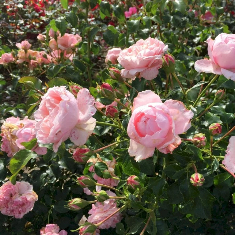 Rosa, ren og klar. Middelstor godt fyldt blomst, som i udspring næsten ligner en pæon. Mere end 40 kronblade. 7-9 cm i diameter. Let duft.