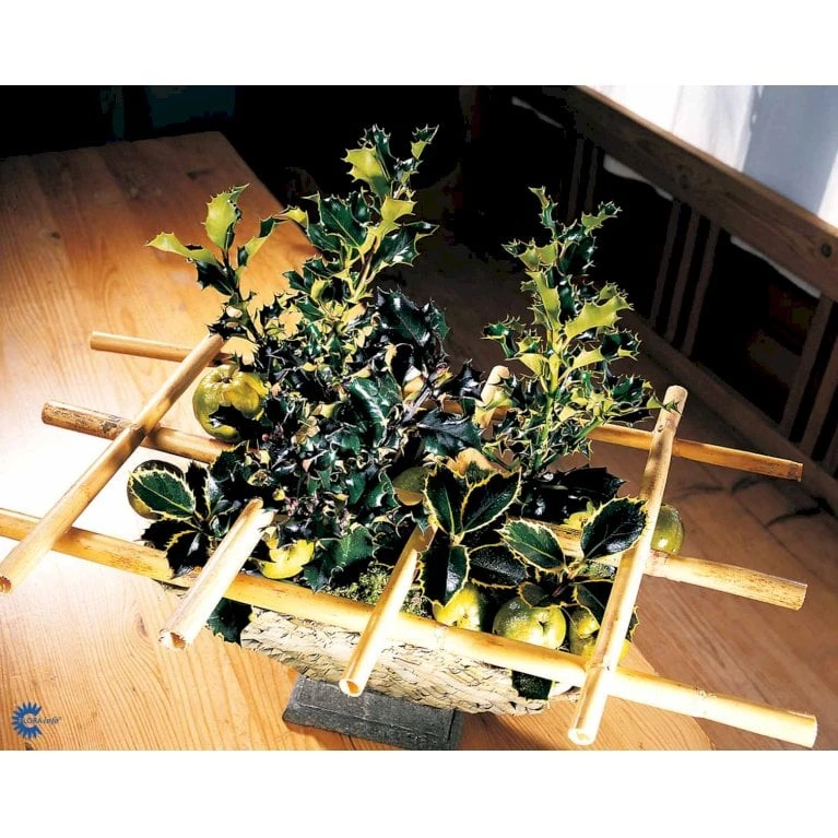 Bladene stive, læderagtige og med randtorne, især på unge individer. Ældre træer får ofte glatte og næsten tornløse blade. Skæres træet kraftigt tilbage, vil nyvæksten atter være tornet. Stedsegrøn.