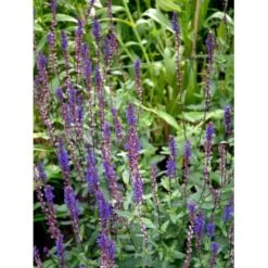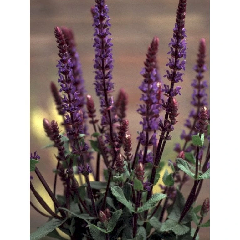 Juni – august. Slanke oprette lys af mørklilla blomster på mørke stilke. Mørke bægerblade. Efterblomstring kan forventes, hvis man fjerner afblomstrede stande.