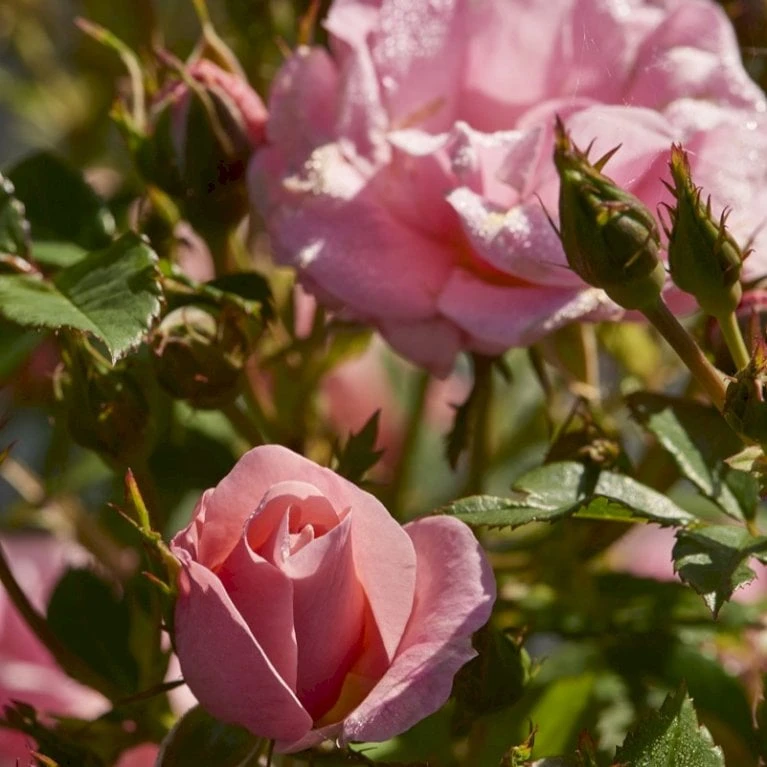Ren rosa. Halvfyldt blomst med let duft. 15-25 kronblade. 5-8 cm i diameter.
