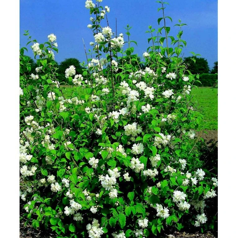 Rent hvide blomster, som sidder flere sammen. Blomsterne er fyldte, som små roser og har en behagelig duft.