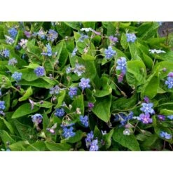 Juni- september. Små lysende blå blomster, som minder om forglemmigej.